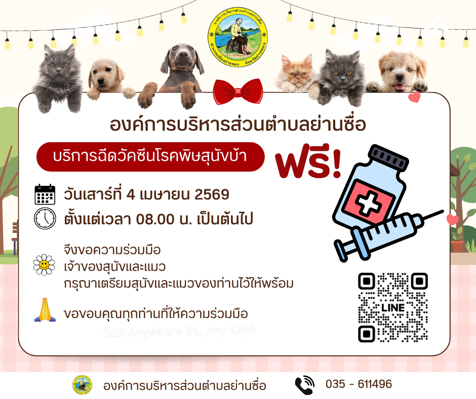 จัดทำโครงการสัตว์ปลอดโรค คนปลอดภัยจากโรคพิษสุนัขบ้า ประจำปี 2569