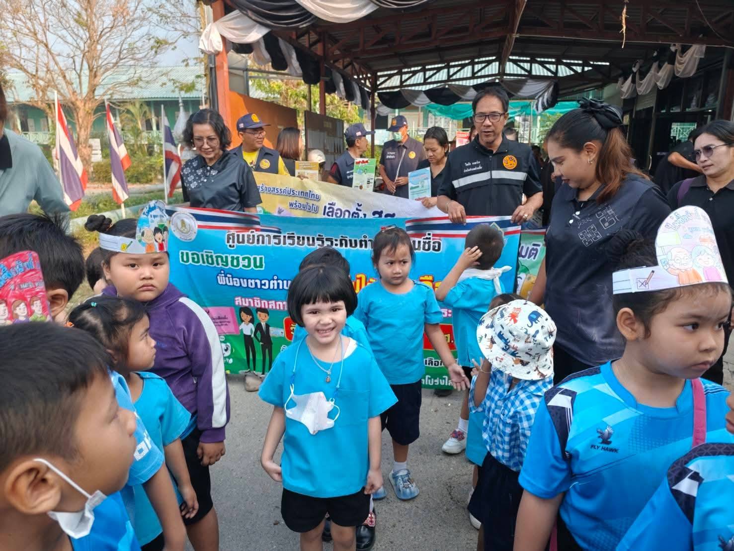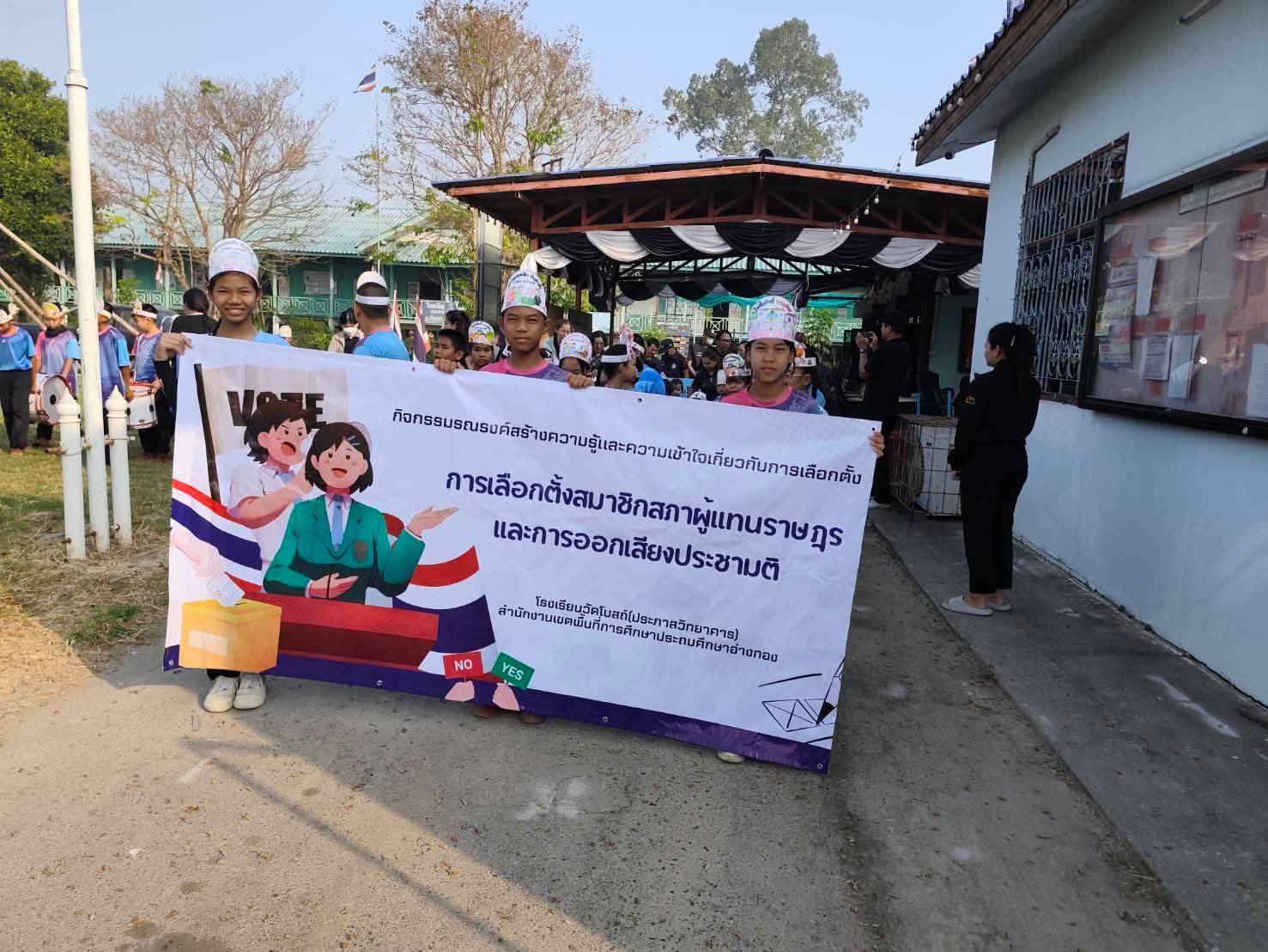 เด็กๆร่วมเดินขบวนรณรงค์ออกมาใช้สิทธิ์เลือกตั้งสมาชิกผู้แทนราษฎรและการออกเสียง ประชามติ