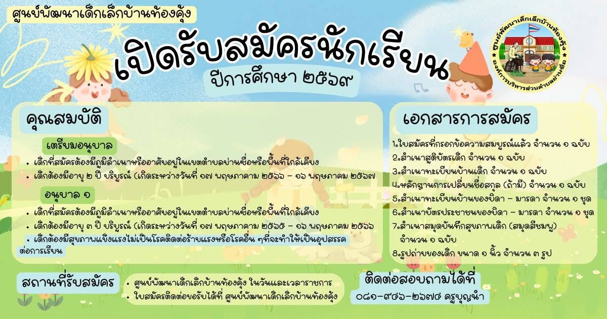 🍁ยินดีต้อนรับเด็กๆ เข้าสู่รั้ว🍁🌿ศูนย์พัฒนาเด็กเล็กบ้านท้องคุ้ง ประจำปี 2569🌿